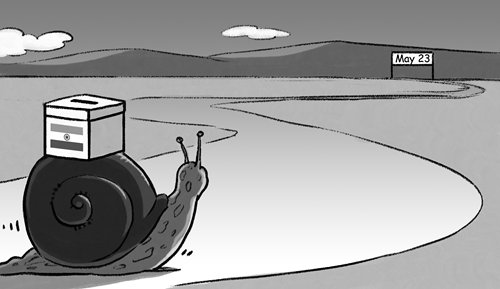 A cartoon titled, ‘India’s slow election’ has the picture of ballot box upon a snail that is on a long, winding road to the finish date of May 23.[3] As cartoons go this is one of the less offensive ones that can be found about India. Yet, it not just suggests slowness in the time taken to complete India’s elections and the announcement of the results but also that Indian democracy itself is slow in delivering on its promises.