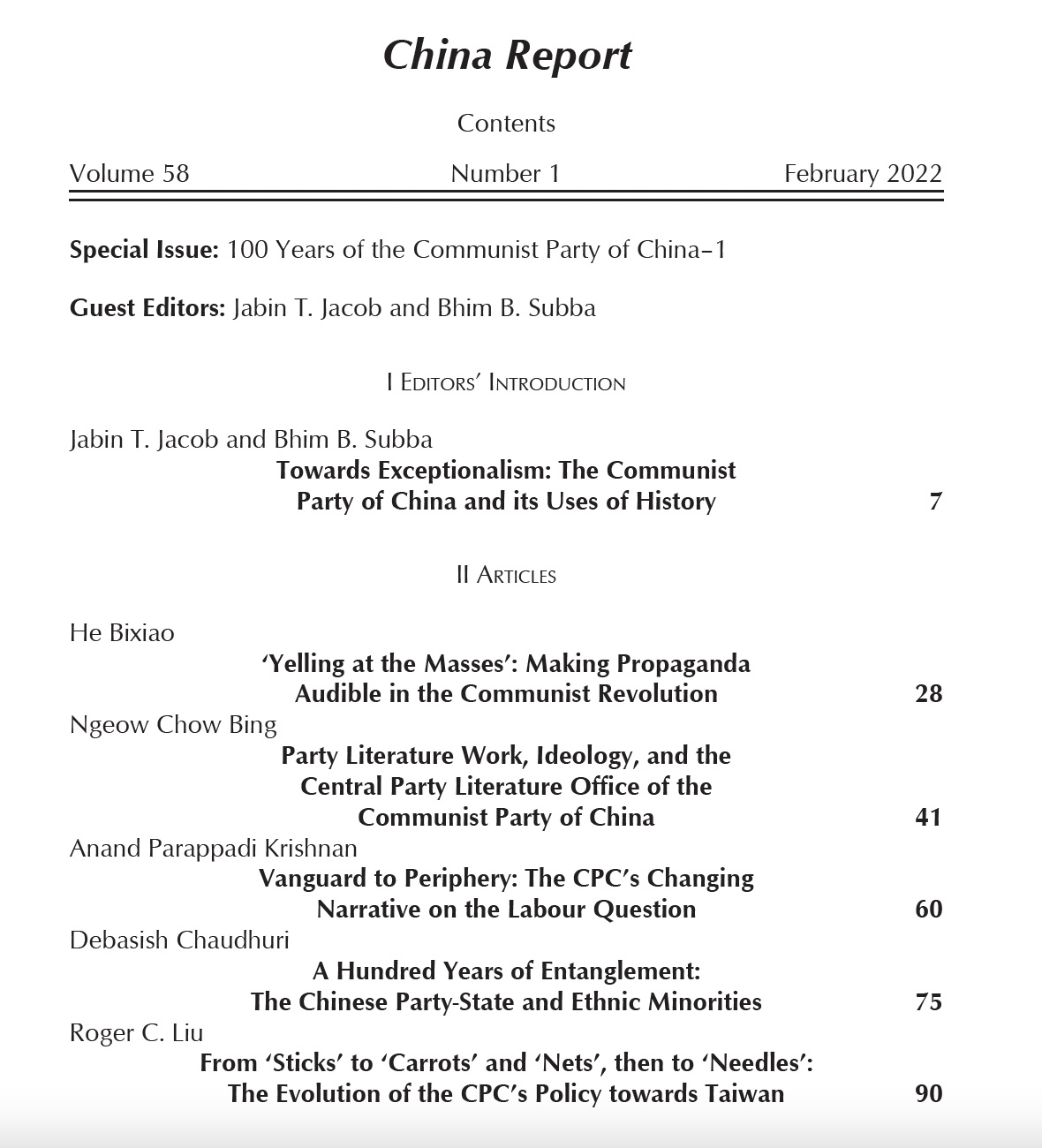 China Report Vol. 58, No. 1, February 2022